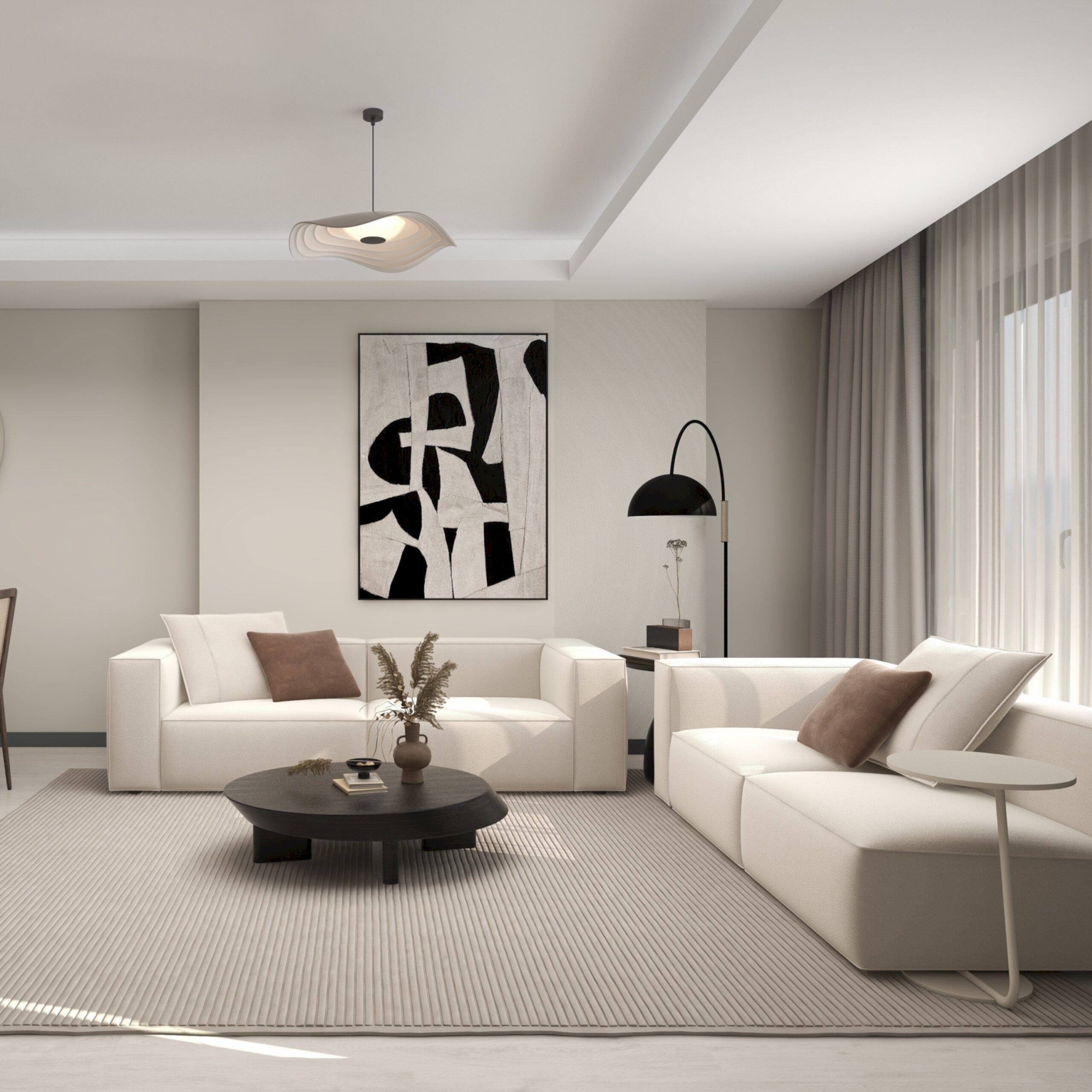 • Dokuz farklı oturma odası iç mimari tasarım konsepti: minimalist, modern, klasik, endüstriyel, rustik, bohem, fütüristik, Akdeniz ve İskandinav. Her bir oturma odası, belirgin tarzını yansıtan mobilya, dekorasyon ve renk paleti ile tasarlanmış. Minimalist oda sade ve düzenli, modern oda şık ve sofistike, klasik oda zarif ve detaylı, endüstriyel oda ham ve işlevsel, rustik oda sıcak ve doğal, bohem oda renkli ve eklektik, fütüristik oda yenilikçi ve teknolojik, Akdeniz oda ferah ve deniz esintili, İskandinav oda ise aydınlık ve sade. Her odada doğal ışık ve uygun aydınlatma kullanılmış.